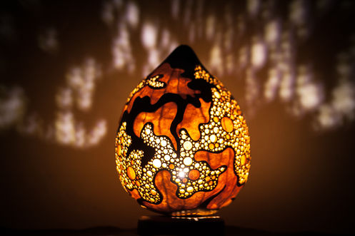 Live with natural things that are not artificial. All lamps that I produce are created "from the gourd up" using materials grown straight from the earth. These gourd lamps are one-of-a-kind, created by the blessings of nature.