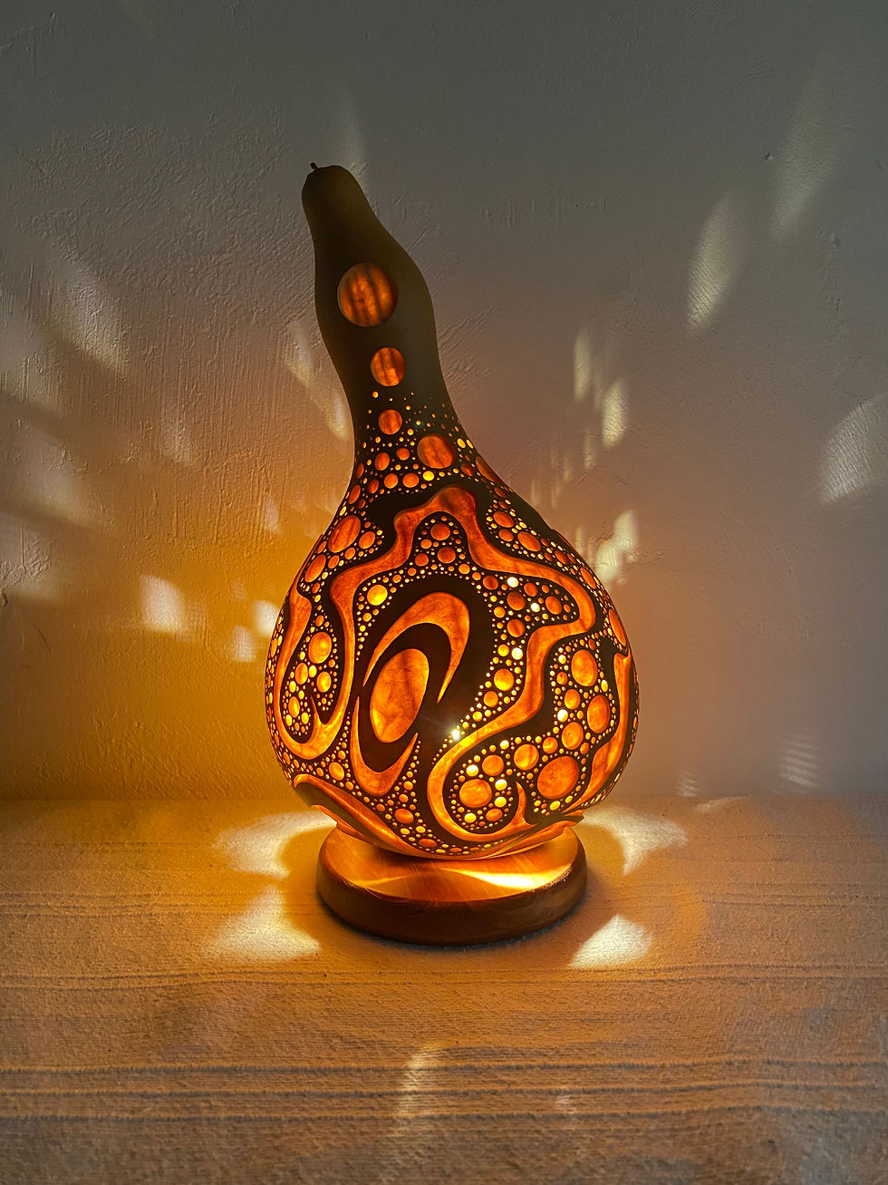 No matter where you are in the world, you can enjoy the beautiful glow of your handcrafted gourd lamp.